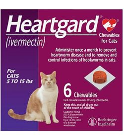 Heartgard plus chewables offer comprehensive protection against heartworm for dogs and can also be used to treat and control outbreaks of roundworms and hookworms. In clinical trials many commonly used flea collars dips shampoos anthelmintics antibiotics vaccines and steroid preparations have been administered with heartgard plus. The active ingredient in this product is ivermectin. Heartworm disease in cats is expensive to treat and often fatal but cat heartgard chewables are a once a month heartworm preventative that protects your feline from infection by eliminating the tissue stage of heartworm larvae and also removes and controls hookworms.