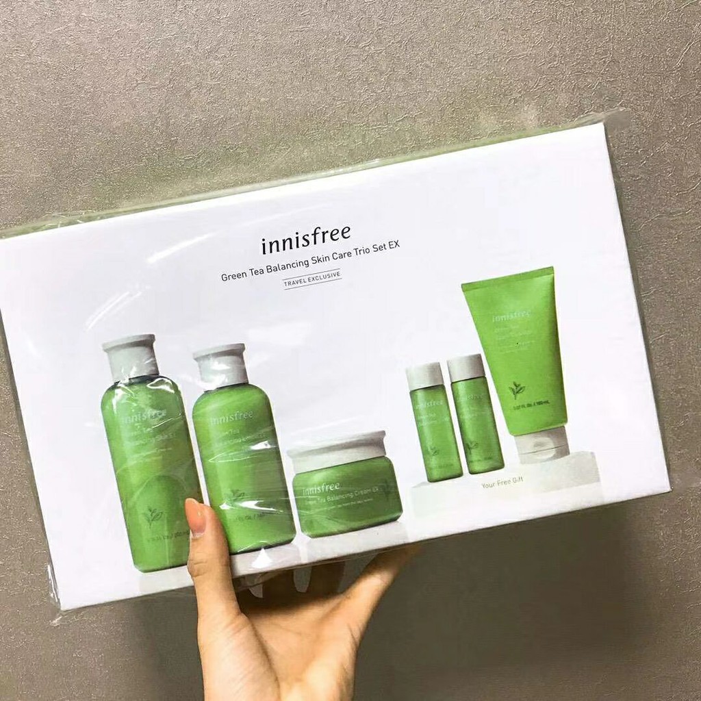 It is more thana toner but in the form of a toner. Innisfree green tea balancing skin care set ex là bộ sản phẩm có thành phần chính từ trà xanh thế hệ mới dành cho da thường da hỗn hợp có tác dụng giúp da khỏe mạnh mềm mại mịn màng hơn. The green tea balancing line is specially formulated to help those with combination or oily skin that lacks hydration. Green tea is one of the hottest trends in the skin care world and for good reason.