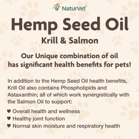 Essential fatty acids cannot be produced in the body and must be supplied by other sources to help ensure optimal health and wellness for your pet from the inside out. Naturvet hemp seed oil krill salmon for pets 10 47 49 repeat delivery. And according to dr.
